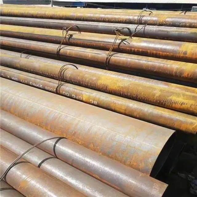 辽宁gb3087无缝钢管要用钢锭或实芯管料经破孔制成毛管,随后经热扎、冷轧或冷拨制成。辽宁gb3087无缝钢管在中国钢管业中具备重要的位置。据不完全统计,我国目前无缝管生产公司约240多家,无缝管机组约250多套,年产能力约450多万吨。从规格看,辽宁gb3087无缝钢管的原料是圆管坯,圆管胚要经过切割机的切割制作成长短约为1米胚料,并经输送带送至溶炉内加温。钢坯被送进溶炉内加温,温度约为1200℃。燃料为氢气或乙炔。炉内温控是关键性的难题.圆管坯出炉后要经过压力穿孔机开展穿空。一般较常见的穿孔机是锥形辊穿孔机,这类穿孔机生产效率高,产品品质好,破孔扩径量多,可穿多种钢种。破孔后,圆管坯就先后被三辊斜轧、连轧或挤压。挤压后应脱管定径。定径机根据锥形钻头高速运转入钢胚打孔,产生钢管。钢管内径由定径机钻头的直径长短来决定。钢管经定径后,进入冷却塔中,根据喷水冷却,钢管经冷后,就要被校直。钢管经校直后由输送带送往金属探伤机(或压力试验)进行内部探伤。若钢管内部有裂痕,气泡等问题,将被检测出。钢管质检后还要通过严格手工选择。钢管质检后,用漆料喷上编号、规格、生产日期等。并由吊车吊入仓库里。
